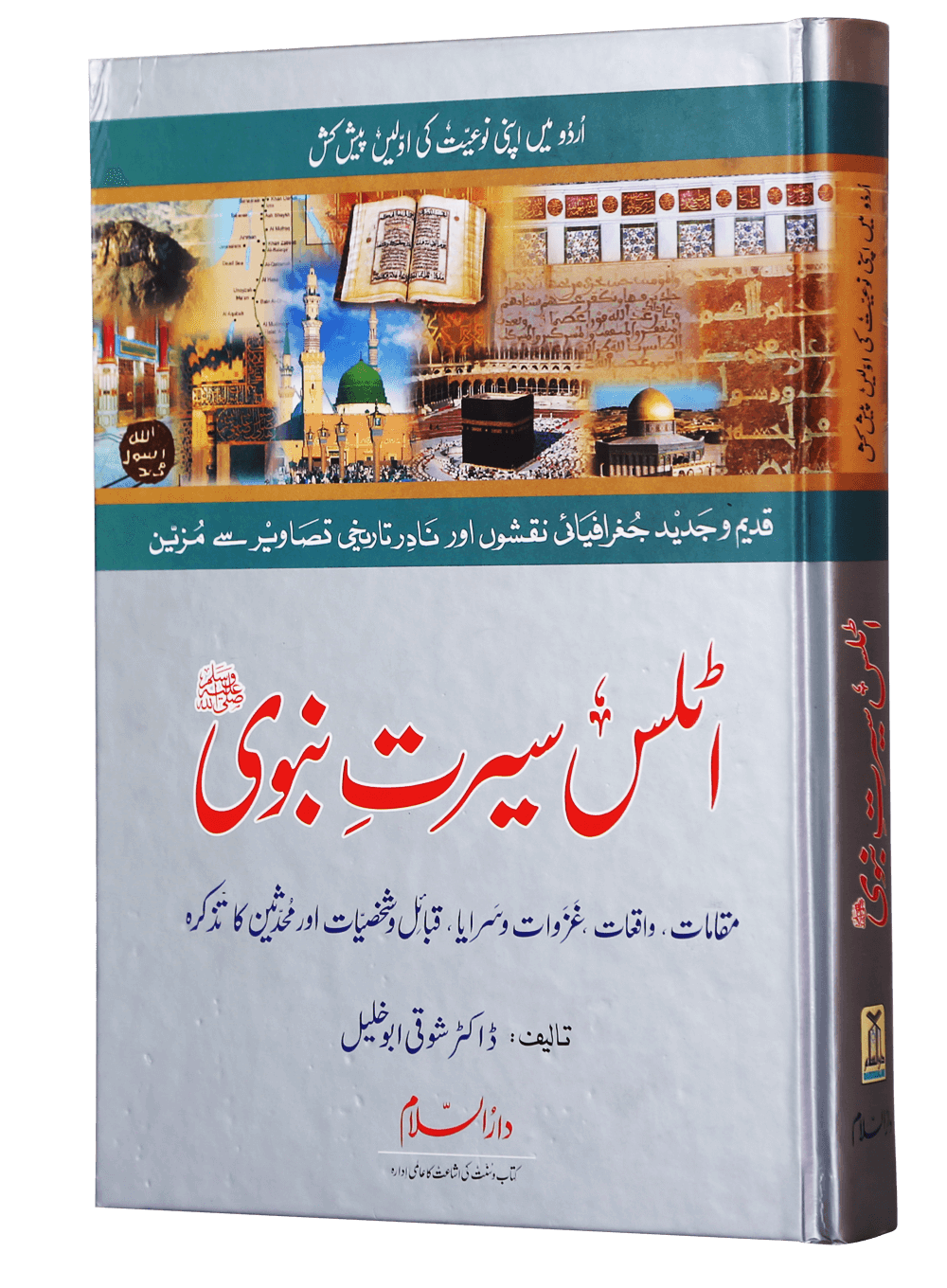 پیغمبر آخرالزماں جناب محمد رسول اللہ صلی اللہ علیہ وسلم کی نبوت ورسالت تو قیامت تک کے تمام انسانوں کے لیے ہے لیکن یہ بھی حقیقت ہے کہ آپ صلی اللہ علیہ وسلم جزیرۃ العرب میں پیدا ہوئے۔مکہ مکرمہ میں پرورش پائی اور 53برس تک یہیں رہے بعد ازاں مدینہ منورہ کی جانب ہجرت فرمائی اور عمر عزیز کے 10 سال یہاں بسر کیے۔آپ صلی اللہ علیہ وسلم نے اس عرصے میں سفر بھیکیے،صفر میں بھی رہے،حالت امن میں بھی دن گزارے اور حالت جنگ میں بھی شب وروز بسر ہوئے۔اس تمام شرگزشت اور ریکارڈ کو سیرت نبوی علی صاحبہا الصلوۃ والسلام کا نام دیا جاتا ہے۔مختلف زبانوں میں سیرت نبوی پر بے شمار کتابیں موجود ہیں جو قارئین کے مطالعے میں رہتی ہیں تاہم ان میں ایک تشنگی کا احساس رہتا ہے کہ مقامات واماکن کا نقشہ کتابوں میں نہیں ہوتا جس سے جگہوں کا صحیح تعارف نہیں ہو پاتا۔اس کو مد نظر رکھتے ہوئے ڈاکٹر شوقی ابو خلیل نے زیر نظر اٹلس مرتب کی ہے جس میں سیرت کی وضاحت نقشوں سے کی گئی ہے ۔ان نقشوں میں تمام متعلقہ مقامات ،شہروں اور ان اطراف واکناف کی تفصیل سے جن کو آپ صلی اللہ علیہ وسلم نے اپنی تشریف فرمانی سے رونق بخشی یا جن کی طرف آپ نے قصدفرمایا۔اصل کتاب عربی میں تھی،جسے معروف اشاعتی ادارے دارالسلام نے اردو قالب میں ڈھال کر اردو دان طبقے کے لیے بھی اس سے استفادہ کو آسان کر دیا ہے۔امید قارئین کے لیے یہ کتاب دلچسپ معلومات کا ذریعہ ہو گی