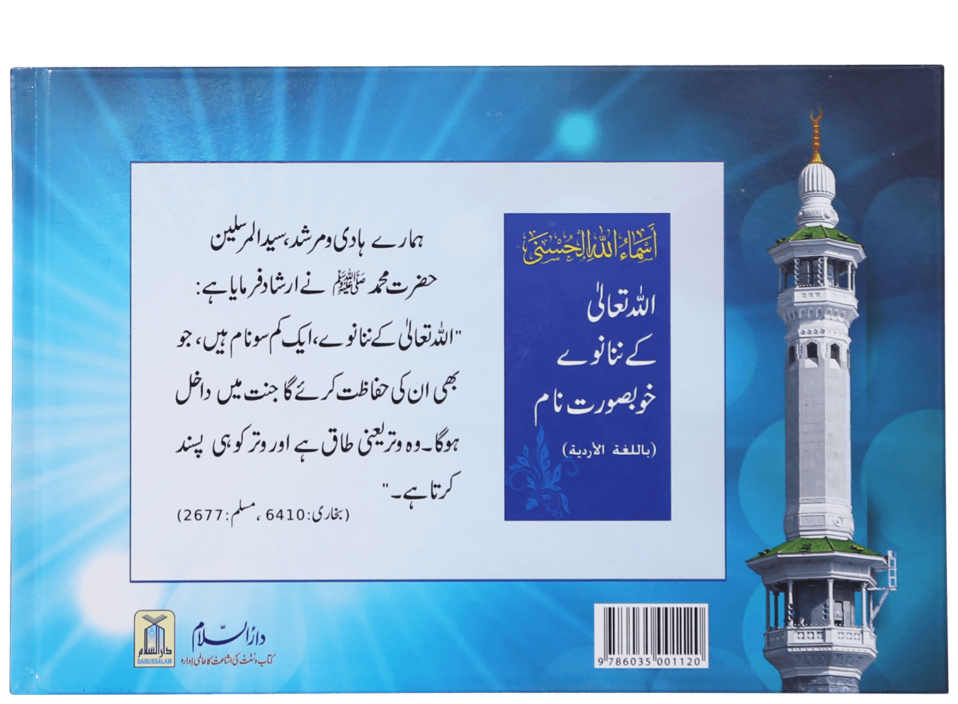ہمارے ہادی و مرشد، سید المرسلین حضرت محمد ﷺ نے ارشاد فرمایا ہے: `اللہ تعالیٰ کے نناوے، ایک کم سو نام ہیں، جو بھی ان کی حفاطت کرے گا جنت میں داخل ہوگا۔ وہ وتر یعنی طاق ہے اور وتر ہی کو پسند کرتا ہے` اللہ کے خوبصورت ناموں کو بہترین انداز میں پیش کرنے والی نایاب کتاب۔