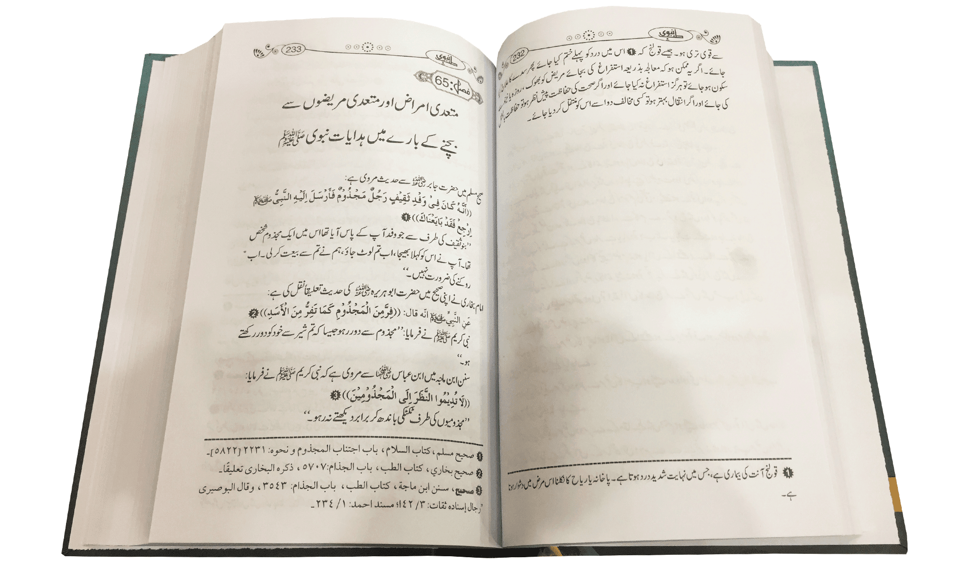 پیغمبر اسلام صلی اللہ علیہ وسلم نے اپنی حیات میں جہاں روحانی اور باطنی بیماریوں کے حل تجویز فرمائے وہیں جسمانی اور ظاہری امراض کے لیے بھی اس قدر آسان اور نفع بخش ہدایات دیں کہ دنیا چاہے جتنی بھی ترقی کر لے لیکن ان سے سرمو انحراف نہیں کر سکتی۔ زیر نظر کتاب حافظ ابن قیم کی شہرہ آفاق تصنیف ’زاد المعاد فی ہدی خیر العباد‘ کے ایک باب ’الطب النبوی‘ کا علیحدہ حصہ ہے جسے ایک کتاب کی شکل میں الگ سے طبع کیا گیا ہے۔ مولانا کا کہنا ہے کہ بہت سے لوگ دعا اور دوا کے سلسلے میں افراط کا شکار ہیں لیکن یہ دونوں نقطہ ہائے نظر تعلیمات نبوی صلی اللہ علیہ وسلم سے میل نہیں کھاتے بیماری کے علاج کے لیے دعا اور دوا دونوں از حد ضروی ہیں۔