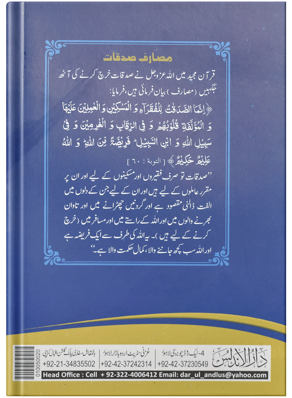 زیرِنظر کتاب میں زکوٰۃوعشراورصدقہ فطر کے مسائل کو عام فہم اور سادہ سلیس انداز میں وضاحت کے ساتھ بیان کیا گیا ہے۔ان مسائل کو پانچ ابواب میں تقسیم کیا ہے۔ان ابواب میں زکاۃوعشروصدقہ فطر کے متعلق تمام پہلووَں کو مدِنظر رکھا گیا ہےاس کتاب میں تمام حوالے قرآن و حدیث سے لیے گئے ہیں۔